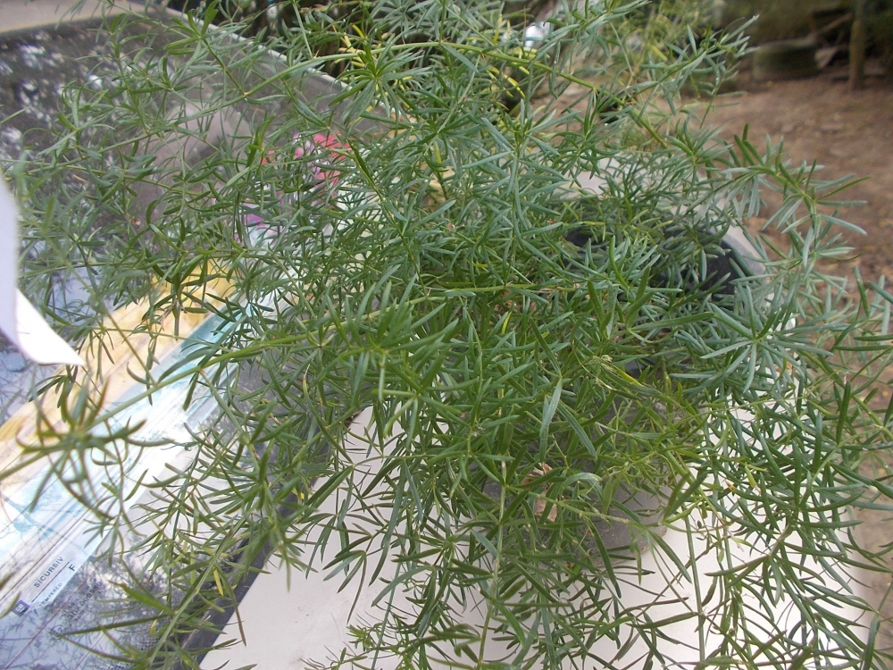 Régi, dédszüleinknél nevelt aszparáguszfajta. Lédús gyökerei száraz időben is biztosítják a megfelelő nedvességet a növénynek. Apró fehér virágaiból őszre beérett piros bogyók lesznek, melyek szintén dekoratívak.1 éves növényeket tudok küldeni.