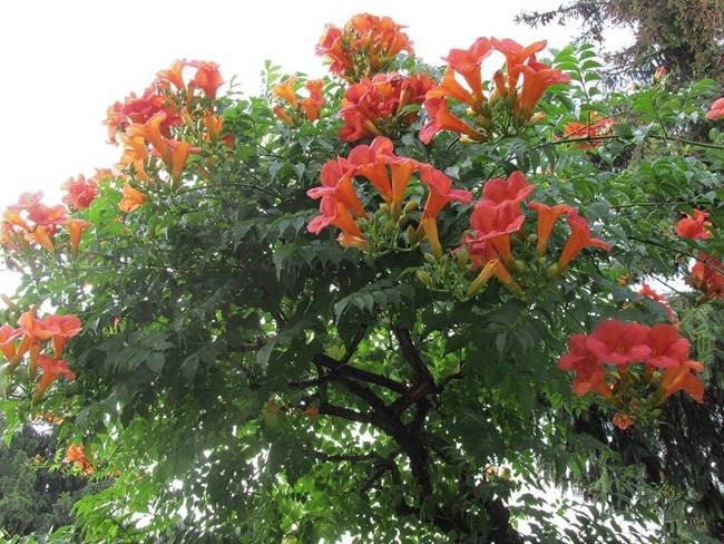 A kb. 10-15 cm hosszú csoportban hozott virágai pirosas-barnás színben nyílnak a nyár folyamán. Gyors növekedésű, falra, fákra is felfuthat. Gyökérről több méterre az anyatőtől is kihajthat. Igénytelen, de a napos helyet jobban szereti.
